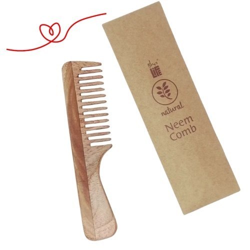Go natural with our durable, handcrafted, eco-friendly Neem wood comb. The wood of the Indian neem tree (Azadirachta Indica) has proven medicinal properties that prevent fungal growth and can reduce dandruff. This wide-toothed comb has rounded tips designed to gently massage the scalp, helping to normalize sebum production and stimulate hair growth. Unlike plastic combs, the Neem wood comb does not cause frizz or breakage due to static electricity.